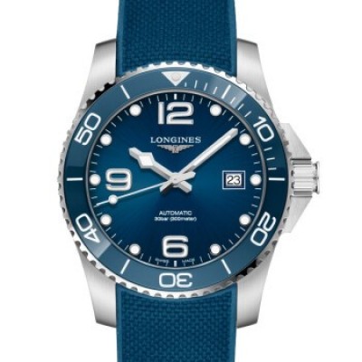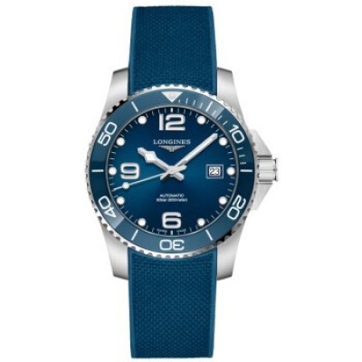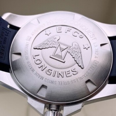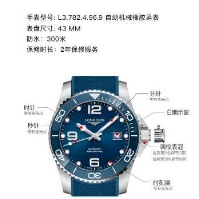 瑞士浪琴LONGINES手表新款康卡斯系列自動機械陶瓷外圈男表 43mm橡膠帶藍盤L3.782.4.96.9