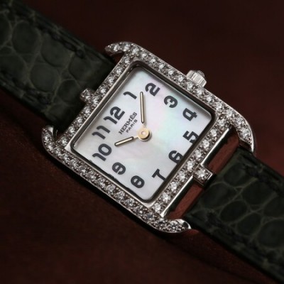 愛馬仕 H HOUR系列18k白金原鑲鉆貝母盤全原裝女表名品奢侈品腕表時尚鐘表手表