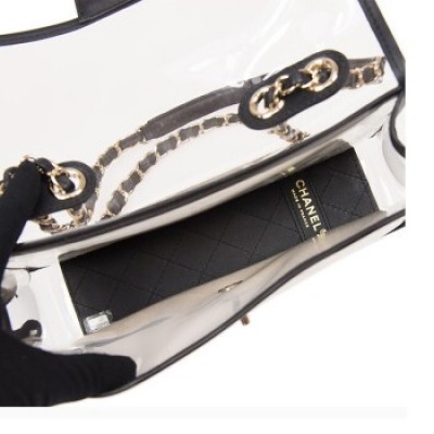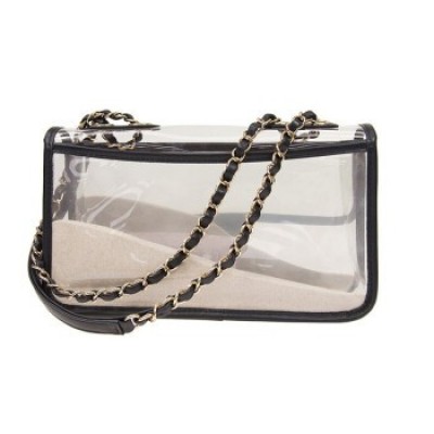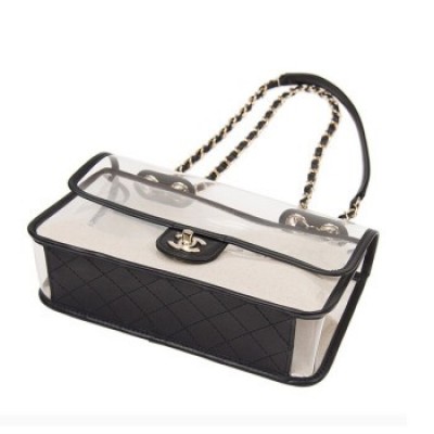 香奈兒/Chanel 宋茜同款女士透明黑边pvc金屬logo标识金扣單肩斜挎包 預售