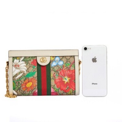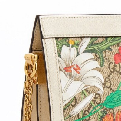 GUCCI 古馳 女士Ophidia系列GG飾花卉印花白色/烏木色帆布小号肩背包 503877 HV8AC 9759