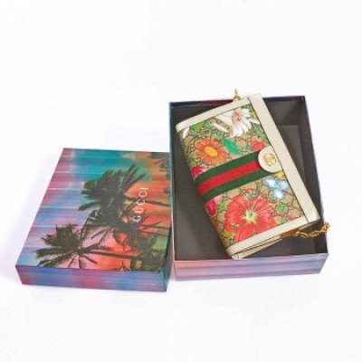 GUCCI/古馳 中性时尚黑色皮革logo印花拉鏈錢包 黑色