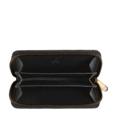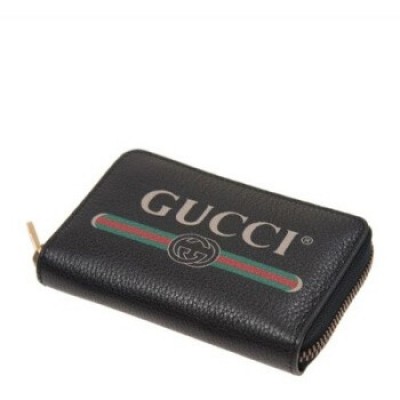 GUCCI/古馳 中性时尚黑色皮革logo印花拉鏈錢包 黑色