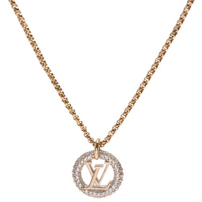 Louis Vuitton路易威登LV饰品M00759经典LOUISE BY NIGHT字母水钻镶饰圆形吊坠项链(金色)
