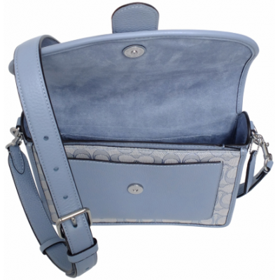 首页 > 高端品牌包包 > COACH石灰藍C Logo金屬圓牌釦式翻蓋斜背郵差包