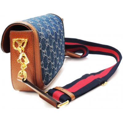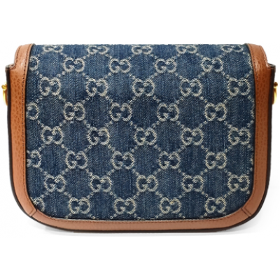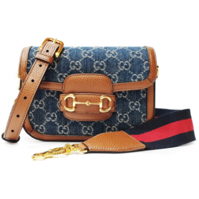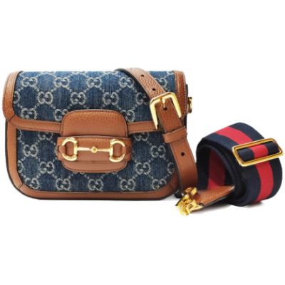 【GUCCI 古馳】658574 經典1955 MINI Horsebit馬銜釦兩用背帶肩背/斜背包 (丹寧)