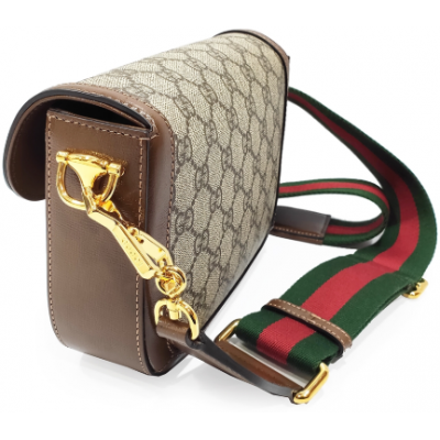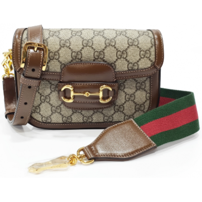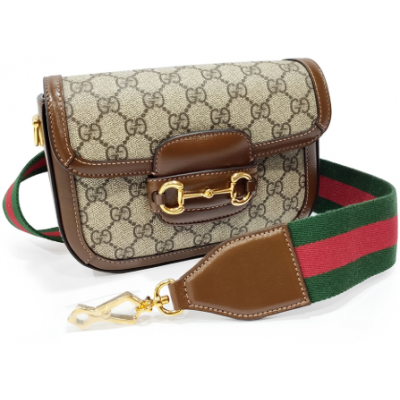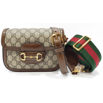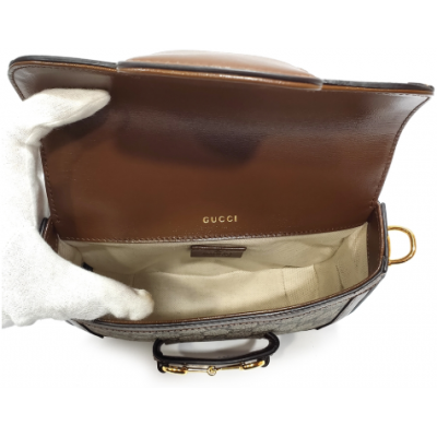 【GUCCI 古馳】658574 經典1955 MINI Horsebit馬銜釦兩用背帶肩背/斜背包 (棕色)