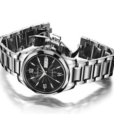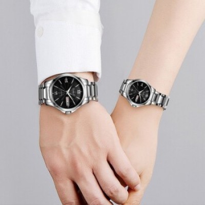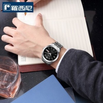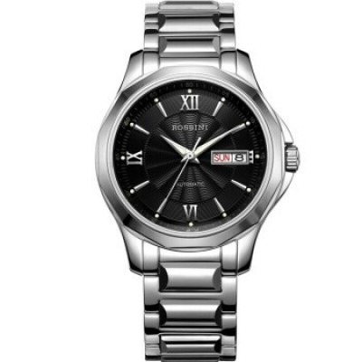 羅西尼(ROSSINI)手錶男錶女錶雅尊商務系列雙曆夜光防水自動機械【專櫃同款】情侶手錶男士手錶原色不銹鋼帶黑盤機械情侶表情侶款組合2組系列《雙重整合訂單》