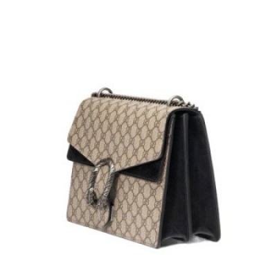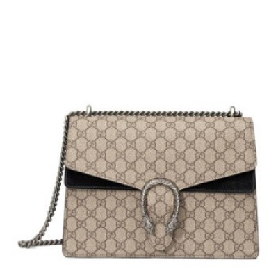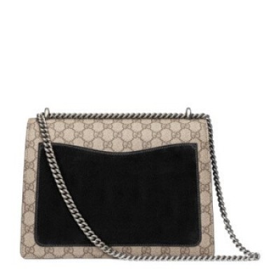 GUCCI/古馳 經典款式女士酒神帆布/配皮麂皮中號鏈條包單肩包 403348 KHNRN 棕色黑邊