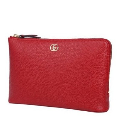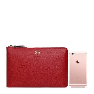 GUCCI古馳 GGMarmont系列女士牛皮GG時尚手拿包 紅色