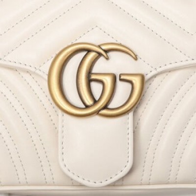 古馳女包 GG Marmont系列牛皮小號絎縫女士單肩斜挎包 443497 DTDIT 6433 白色