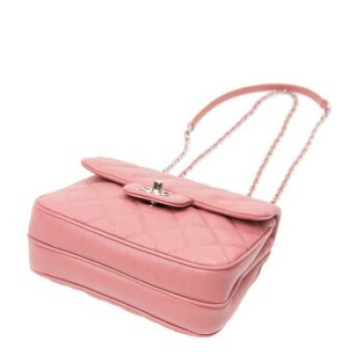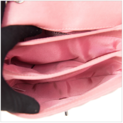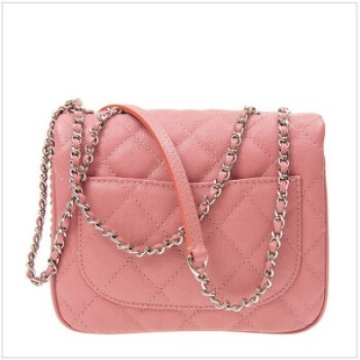 香奈兒/Chanel 女士粉紅色牛皮菱格紋銀扣小號時尚單肩斜挎包 預售