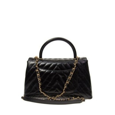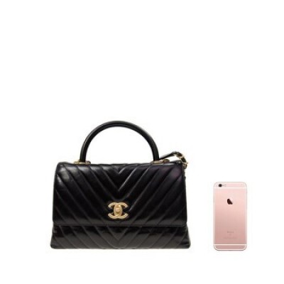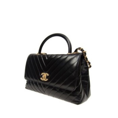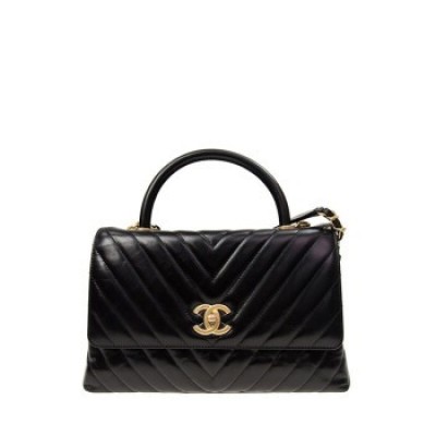 香奈兒/Chanel 女士黑色牛皮條紋金扣時尚手提包單肩斜挎包 預售 黑色 19 * 11 * 17 cm
