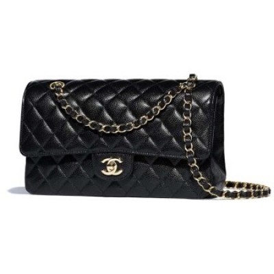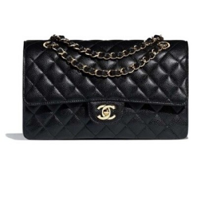 香奈兒/Chanel 女士單肩包黑金cf中號牛皮荔枝紋斜挎包 預售 黑色 15.5 × 25.5 × 6.5 cm
